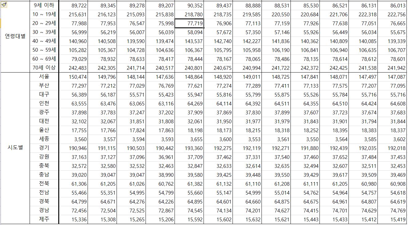 연령대별 및 시도별 통계